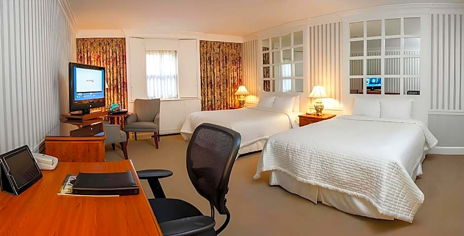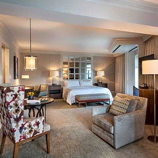 This spacious suite offers a fireplace and a seating area with a sofa bed.